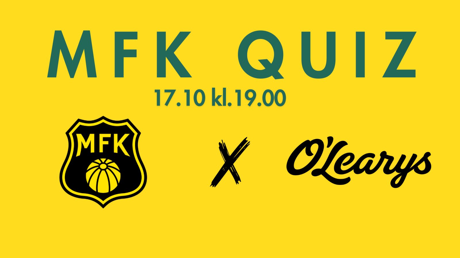 Hold av torsdag 17. oktober. Da er det duket for den første MFK-quizen av sitt slag hos vår nye samarbeidspartner O' Learys. Høydepunktene og premiemulighetene denne kvelden står i kø.